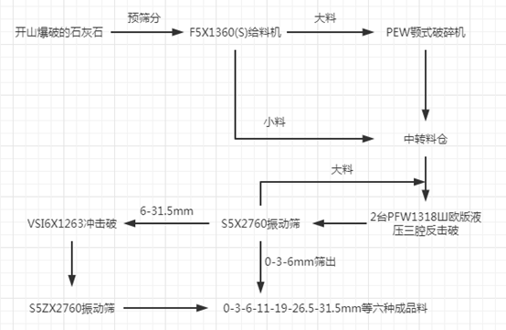 主机设备:PEW颚式破碎机、2台PFW反击破碎机、VSI6X九游老哥J9俱乐部官网