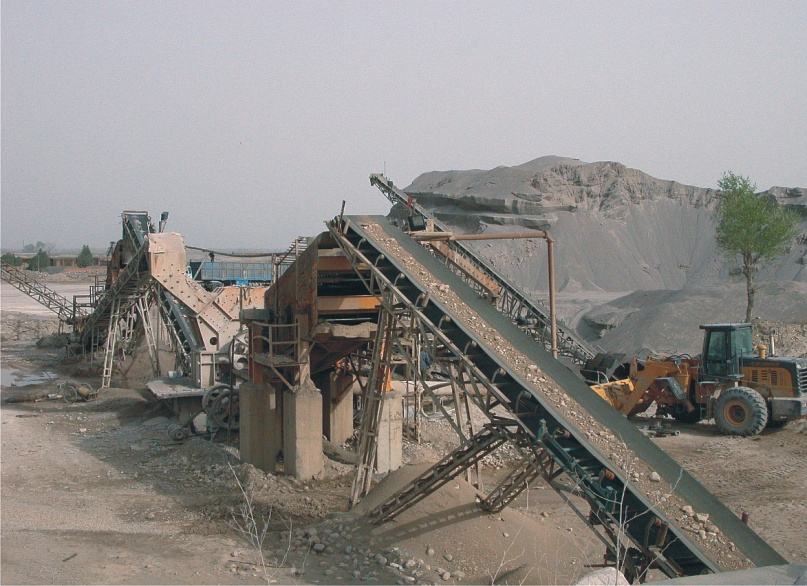 (1)鄂式破碎机(老虎口)。破碎作用是靠可动鄂板周期性地压向固定鄂板,将夹在其中的矿块压碎。