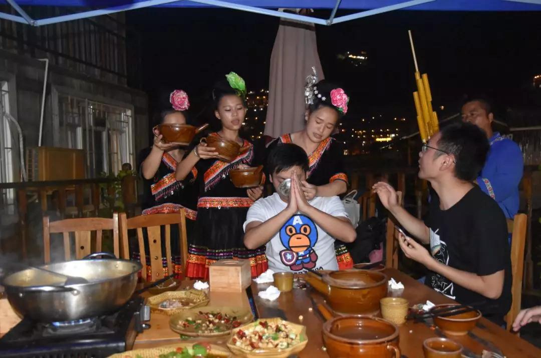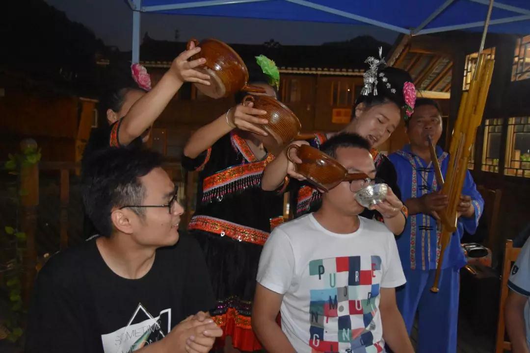 苗寨的酒巨好喝,连我这个不喝酒的都非常喜欢这里的甜酒。这里劝酒的方式也很特别、很粗暴,我同事反正基本都醉了、断片了......但不重要,因为他们喝的很爽!
